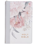 Frosty Gray and Pink Floral Faux Leather King James Version Deluxe Gift Bible with Thumb Index and Zipper Closure