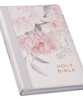 The elegant Frosty Gray and Pink Floral Faux Leather King James Version Deluxe Gift Bible with Thumb Index and Zipper Closure, is an ideal gift for a young woman who appreciates the beauty of the poetic KJV text.