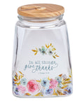 Give Thanks Pink Ranunculus Glass Gratitude Jar with Cards - 1 Thessalonians 5:18