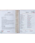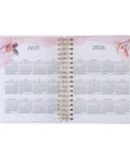 A beautiful presentation page welcomes you to the journal. This page is followed by an index of international holidays for 2025. Also included in the front of the planner are 2 year-at-a-glance views of 2025 and 2026. Each month is introduced with a unique design and an inspirational quote. A month-at-a-glance view of each month with space for notes precedes the weekly planning pages. Each weekday is separated into morning and afternoon sections, while weekends have a smaller footprint that still features the entire day. These pages also include space for to-do lists, a month-at-a-glance mini calendar, and notes.
