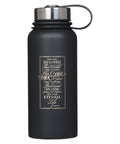 The large capacity God So Loved Black Stainless Steel Water Bottle holds enough liquid to get you through any day. Fill this stainless steel water bottle with refreshing water to sustain your body, and let the words of living water refresh your soul.