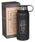 The God So Loved Black Stainless Steel Water Bottle is designed to be your constant companion wherever your busy life may take you. Athletes, students, and even office staff can do their part to protect the environment while caring for their bodies when they use the refillable stainless steel water bottle instead of single-use plastic containers. A quick handwash is all you need to keep the water bottle clean. The water bottle comes packaged in a full-color printed tuck top gift box.