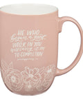 Good Work Pink Floral Ceramic Coffee Mug - Philippians 1:6