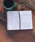Gospel Courage is the perfect size to slip in a purse or glove compartment—take it with you on the go for quick access. Its tawny brown faux leather cover keeps it sturdy for travel. The cover design is organized and simplistic. The heat-debossed title slants up across the front, and a brown, satin ribbon marker matches. Gilt-edged pages add a touch of gold.