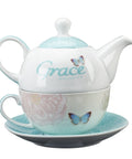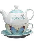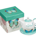Grace Blue Butterfly Blessings Tea Set for One - Ephesians 2:8