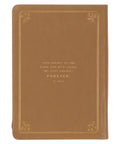 A sturdy zippered closure with a gold-toned metal zipper pull ensures that the journal closes securely. The journal features 336 lined pages, each featuring a Scripture verse printed at the bottom. A gold-toned satin ribbon marker is included to mark your page.