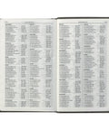 You can stay in the Word all year when you use the included study plan and can quickly find any verse with the Scripture finder and concordance at the back. Additional study features include the words of Christ in red ink, a hematic Scripture verse finder, a concordance, and cross-referencing. At the back, you will find 8 full-color maps for a well-rounded understanding of various biblical stories. A satin ribbon comes attached for marking your place within the gilt-edged pages and thumb indexing makes it easy to find any book of the Bible. The Bible is printed in a giant 14-point font, and the text is organized in a double-column format. The Bible comes packaged in a full-color printed cardstock sleeve.