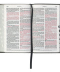 Topstitching borders the edges of this Bible, adding durability to the design, and silver-foiled faux ribbing appears along the spine for a classic touch. The title and version reference also appear in silver foil on the spine.