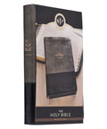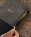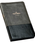 Gray and Black Faux Leather King James Version Deluxe Gift Bible with Thumb Index and Zippered Closure