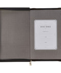 A simple but sophisticated gift, the Gray and Black Faux Leather King James Version Deluxe Gift Bible with Thumb Index and Zippered Closure will help you mark a special milestone in a loved one's faith journey.