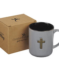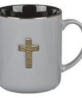 Gray Ceramic Coffee Mug with Metal Cross Inlay