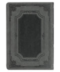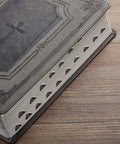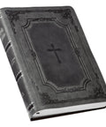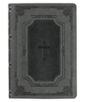 The Gray with Black Inlay Faux Leather Super Giant Print King James Version Bible with Thumb Index with its elaborate Victorian design will become your mother or grandmother's go-to Bible for personal Bible study.