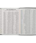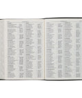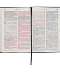 The page edges are gilt-edged in silver, and a thumb index and satin ribbon marker will help you navigate your Bible and save your spot. A Smyth-sewn lay-flat spine protects the Bible binding when opened, and topstitching along the edges of the covers protects from wear and tear.