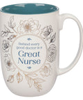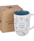 Great Nurse White and Teal Ceramic Coffee Mug - Proverbs 31:25