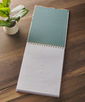 The notepad is bound at the top with a sturdy gold wire. The double o-wire makes it easy to flip over pages. It has 80 lined double-sided pages, each featuring a Scripture verse at the bottom.