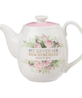He Gives Me New Strength Ceramic Teapot - Psalm 23:3
