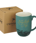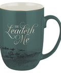 He Leadeth Me Deep Green Ceramic Coffee Mug – Psalm 23
