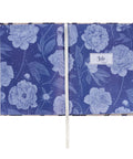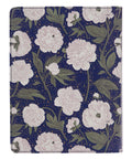 - Navy background with white floral cover design