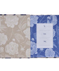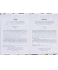 The navy blue faux leather cover of the 365-day devotional is scattered with white peonies with their elegantly curved stems suspended in a universe of gold-foiled dots. The sprinkling of golden dots are complimented by gilt-edged page edges. The title and subtitle are captured in a cream-colored frame with a navy border and lettering.