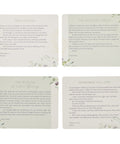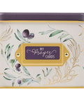 Inside the tin are 50 double-sided cards. Each card's front is decorated with the same olive branch design and holds well-known prayers from the Bible. The back of each card is lined with space for you to craft your own prayer.