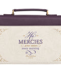 His Mercies Are New Dark Amethyst Purple Fashion Bible Cover - Lamentations 3:22-23