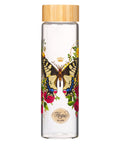 Adorned with a vibrant Eastern Tiger Swallowtail Butterfly, which is surrounded by striking red roses, the design on this glass water bottle is more than a mere decal; it's a tactile experience. A petite metallic gold crown graces the butterfly's top, and the sentiment is elegantly set in a metallic gold frame at the design's base