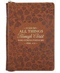 I Can Do All Things Through Christ Honey-brown Faux Leather Classic Journal with Zipper Closure - Philippians 4:13