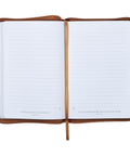 The sturdy brown zipper, equipped with a gold metal zipper pull, guarantees the secure closure of the covers, keeping all loose papers safe. Upon opening the journal, you'll find a presentation page that you can use to note the gift-giving occasion. Every page is lined, and at the bottom of each page, you'll discover an enriching Scripture verse that you can use for meditation or as a prayer or journaling prompt. An attached brown satin ribbon marker ensures you can easily keep track of your thoughts, dreams, and daily entries without losing your place.