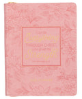 Entrust all your tasks and events for the next 18 months to the LORD with the I Can Do Everything Pink Faux Leather 2025 Large 18-month Planner for Women, and trust that, because of your faith in Christ, you can be content no matter the outcome.