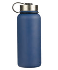 With its double-walled feature, the stainless steel water bottle keeps its contents at a steady temperature for up to 24 hours, and with a bit of pre-heating, you can be sure your hot drink will stay hot. A black plastic ring secures the silver twist-off cap that is outfitted with a silicone ring to ensure it seals tightly. The plastic ring easily doubles as a finger hook for carrying the bottle. The stainless steel water bottle holds a generous 34 fluid ounces of liquid.