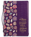 I Know the Plans Purple Floral Faux Leather Fashion Bible Cover - Jeremiah 29:11