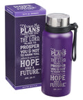 I Know the Plans Purple Stainless Steel Water Bottle - Jeremiah 29:11