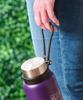 This large bottle is excellent for holding and carrying beverages for long periods while preserving the temperature. The water bottle's stainless steel interior is double-walled and has vacuum insulation to conserve hot and cold drinks for up to 24 hours. This bottle's large capacity (32 fluid ounces) deems it ideal for any hard-working athlete or construction worker, and the included rubber wristlet attached to the cap makes the bottle convenient to carry on the go. As with all stainless steel water bottles, hand washing is recommended to keep them in pristine condition.