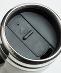 The travel mug is constructed from hygienic brushed stainless steel and is double-insulated to keep your drink warmer for longer. It has a deep-rimmed pull-off lid that is outfitted with a silicone ring to seal it and to prevent spills. The mug has a slide-open sip-hole cover and holds 16 fluid ounces. A stay-cool black handle extends from the side and easily fits three fingers. The slim base of the mug fits most car cup holders, and a non-slip base ensures it does not slide over the surface. Due to the delicate decal decorations, we recommend not submerging the mug but gently handwashing it in warm, soapy water.
