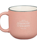 The white-lettered sentiment stands out beautifully against the mug's matte pink exterior, which is charmingly speckled with dainty charcoal dots.