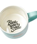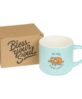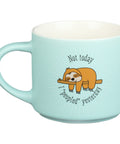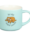 Coated in pretty light aqua, this ceramic mug has the main sentiment printed on one side. The image of a sloth sleeping on a branch is a relatable one for lazy days! The phrase wraps around the sentiment in a black font interspersed with white rays. The interior is white and contains the Bless Your Soul imprint at the bottom. With its cute design and calming colors, the I Peopled Yesterday Ceramic Coffee Mug is a great way to relax!