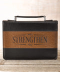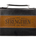 The message of the I Will Strengthen You Black and Brown Faux Leather Classic Bible Cover will encourage a son going to college or a husband facing the challenges of providing for a family. Encourage a husband, father, or son when you give the I Will Strengthen You Black and Brown Faux Leather Classic Bible Cover as a birthday, Christmas, or Father's Day gift.