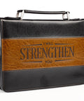 I Will Strengthen You Black and Brown Faux Leather Classic Bible Cover - Isaiah 41:10