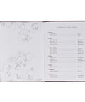 The floral design is continued on the back cover, where a single, large flower is elegantly heat-debossed at the center. The pages are trimmed with lovely golden gilt edging that protects the edges from dust. A convenient ribbon marker is also included, allowing you to keep your place.