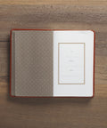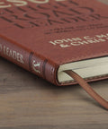 The chestnut brown faux leather gift book's cover features the title in large heat-debossed letters accented with gold foil.