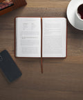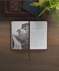The gift book has beautiful gilt-edged pages and a ribbon marker to track your progress. The interior pages are presented in two colors, and sepia-colored landscape images are displayed throughout the book.