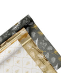 The third roll has a white background with a gold-foiled geometric diamond design that showcases gold-foiled pine branches in each diamond shape.