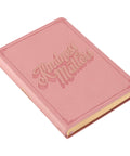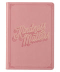 Use your writings in the Kindness Matters Pink Faux Leather Classic Journal to take the focus off yourself and turn your energy into making the world a better place.The journal's soft pink faux leather covers are framed by a heat-debossed border with a heat-debossed photo corner design. The sentiment is presented in large heat-debossed scripted letters outlined in a thin gold foil line.