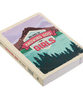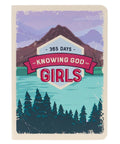 The Knowing God For Girls Devotional Paperback Edition will take tween girls on a year-long journey to better know God.The softcover is decorated with a fun nature image that shows a blueish-green lake framed by pine trees in the foreground and a mountaintop in the background. The title are subtitles are displayed in a green frame with a white border and a pink banner.