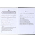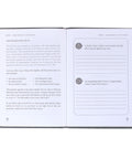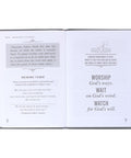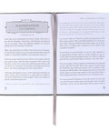 Gilt edging on the page edges matches the gold-foiled details on the cover. The one-color interior is printed in a clear, legible font. A gray satin ribbon marker is included to mark your page.