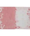 Rose gold gilt-edged page edges elegantly complement the rose gold-foiled accents on the cover. The interior pages, printed in a captivating rosewood hue, are adorned with charming floral corner designs. To assist you in tracking your progress through the year-long devotional, a pink ribbon marker is thoughtfully included.