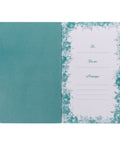 A presentation page at the front of the book is perfect for inscribing a heartfelt message when giving the devotional as a gift. The interior pages are printed in teal and adorned with teal floral banners at the top. The book is thoughtfully designed with a lay-flat construction and a modern flush-cut binding to ensure it opens all the way and reveals all the text.