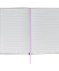 Sturdy white topstitching along the edges and seams boosts the journal's durability, while a white satin ribbon marker offers easy navigation through its contents. The white zipper, finished with a rose-gold metal zipper pull, ensures the pages and any loose notes inside stay secure and pristine.