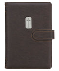 The rich espresso brown faux leather cover has a refined feel that suits any setting—from an office desk to a coffee shop table. Double-stitched edges give it a sophisticated look and durable strength. On the front, a brushed silver metal badge with black fill features a minimalist cross design as its only adornment.