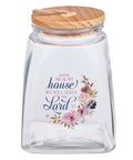Me and My House Purple Floral Glass Gratitude Jar with Cards - Joshua 24:5